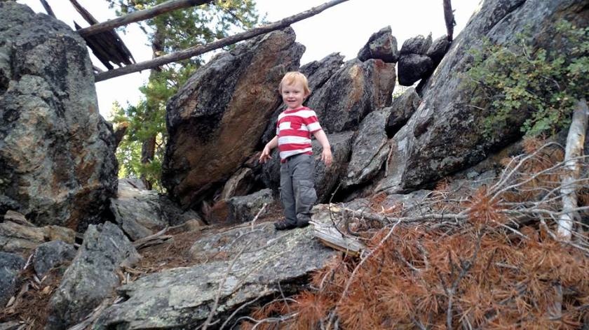 Next Image 2016NR_Dispersed02 Alex climbing on a rock formation that was used as a shelter in the past.