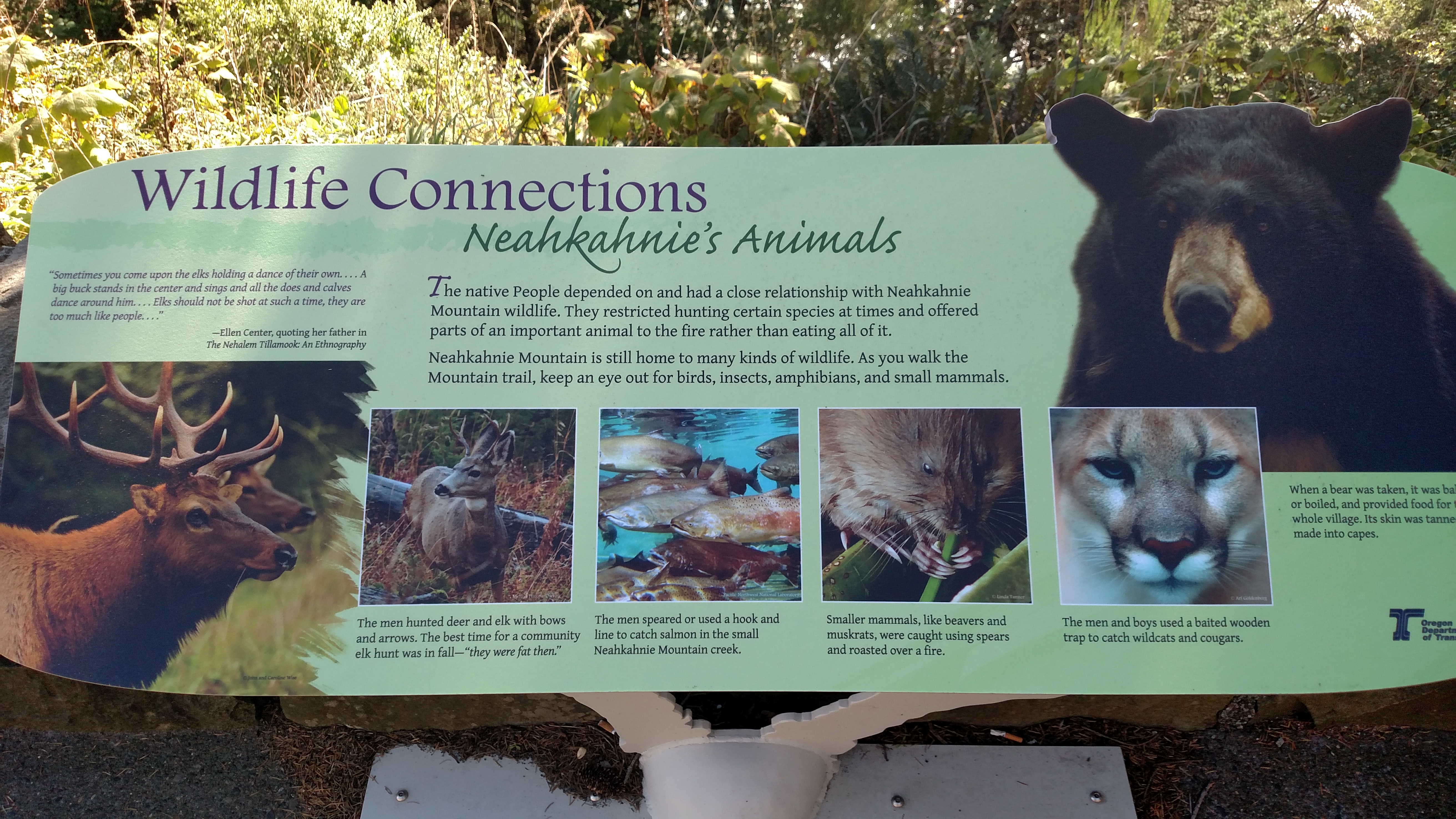 Neahkahnie Mountain animals information plaque.