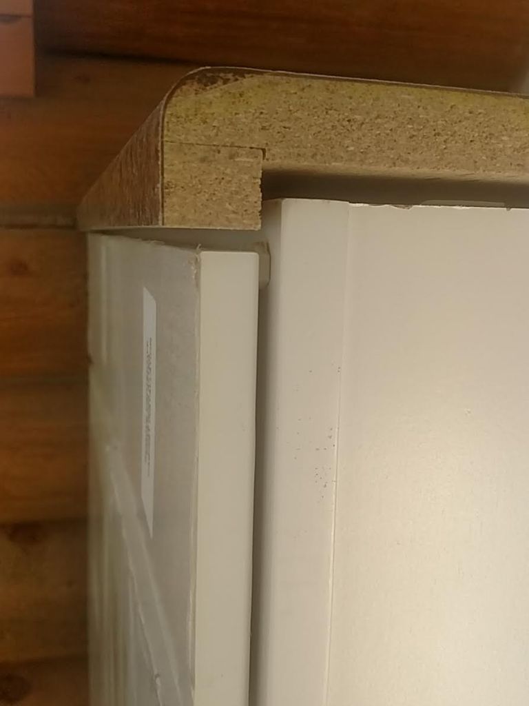 Previous Image laundry_20 Exterior side view of the counter top. The counter top lip would have interfered with the cabinet drawer without the spacing blocks.