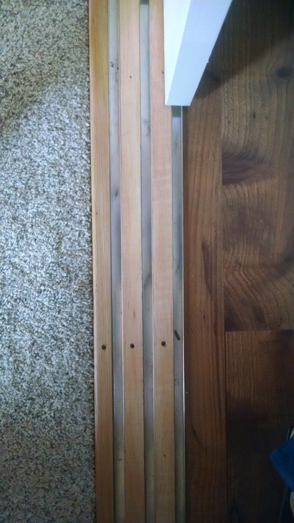 Door bottom track with hickory spacers.