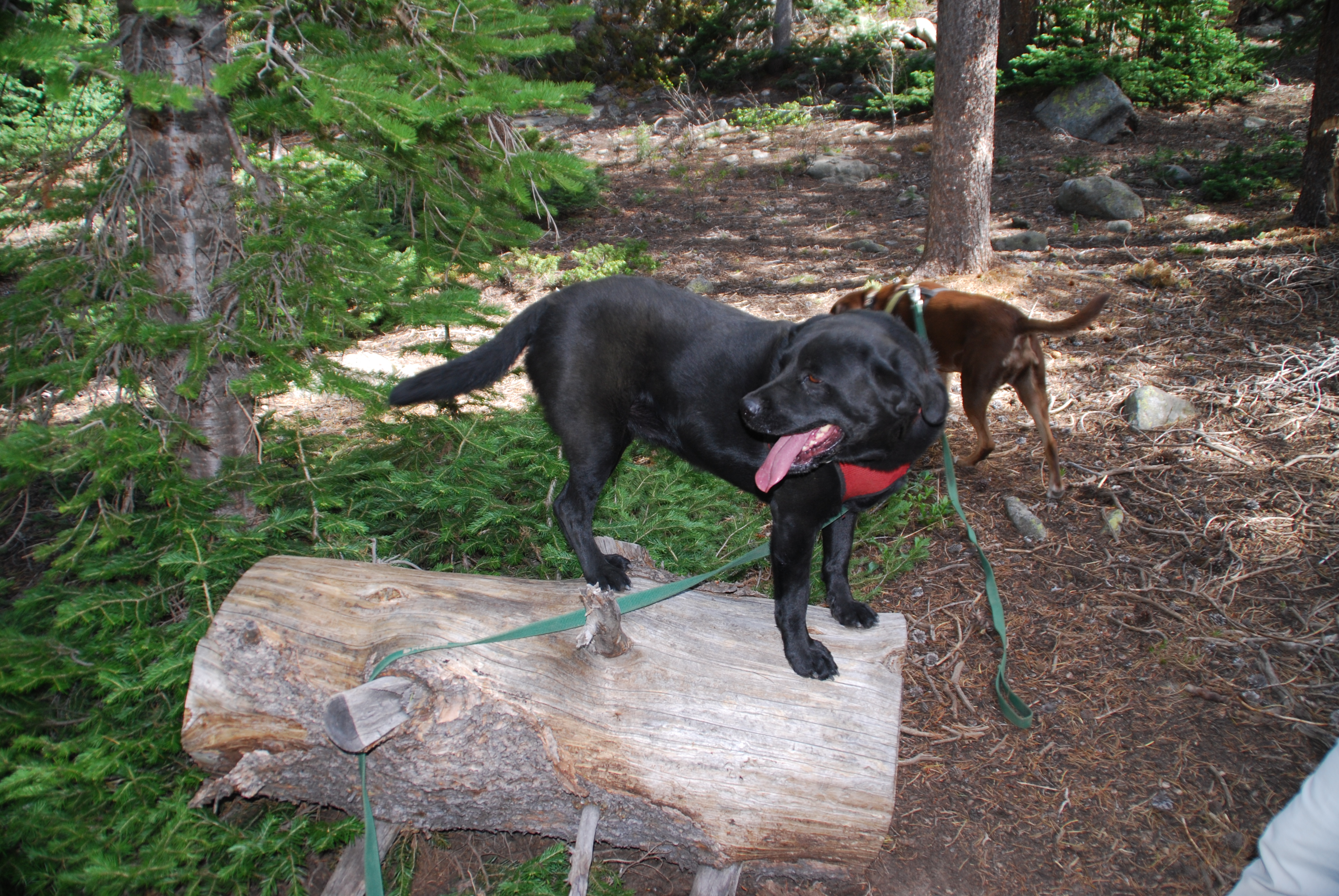 Dog on a log.