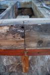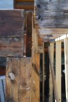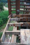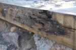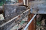 2 x 6 that is almost rotted through. The post that was askance and rotted out at the bottom was ‘attached’ in this area.