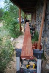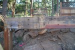 Test fitting a new beam to determine how far out of level the deck joists are.