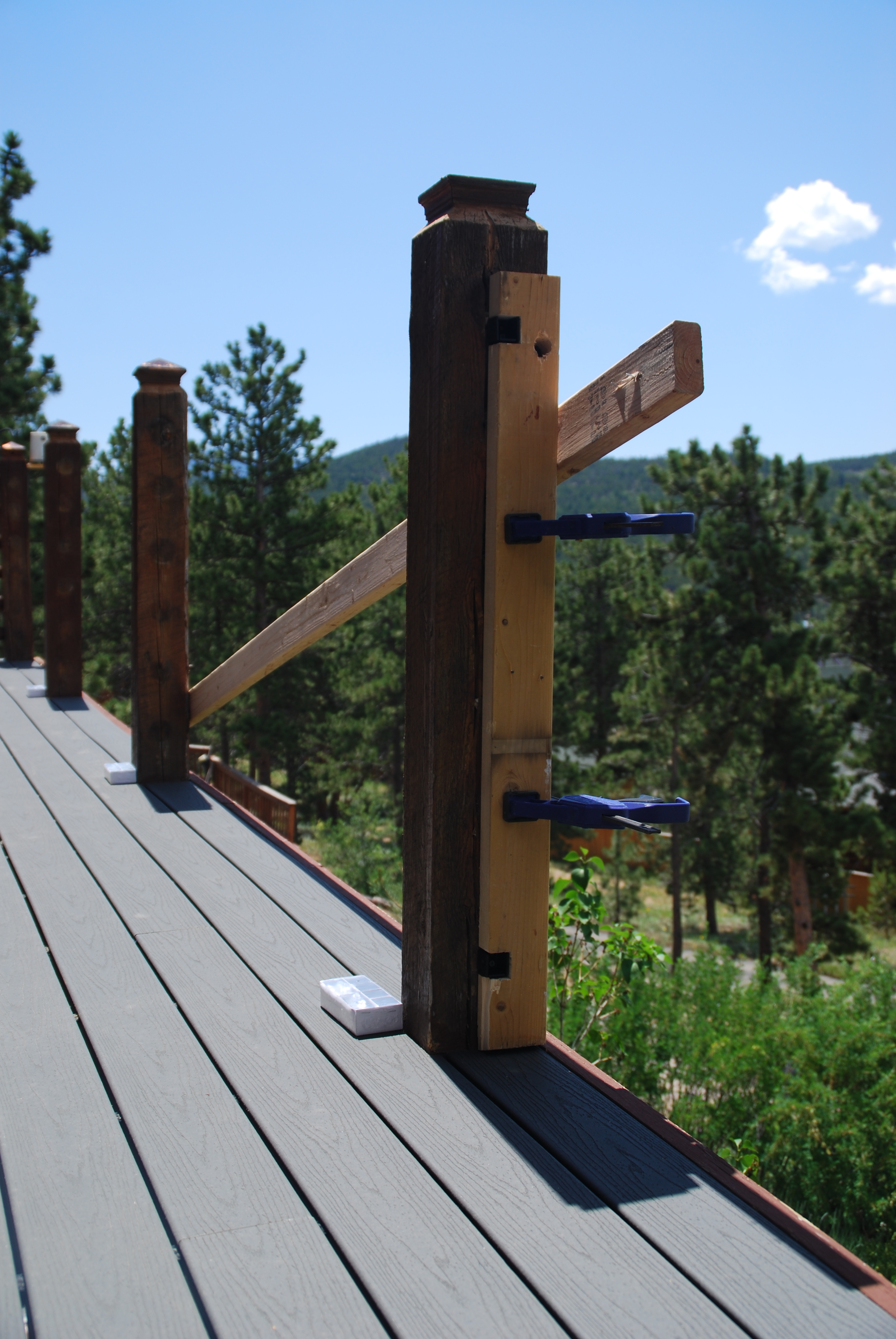 Previous Image Next Image DSC_0091 Cross brace to stabilize and straighten post. Bracket jig is clamped on.