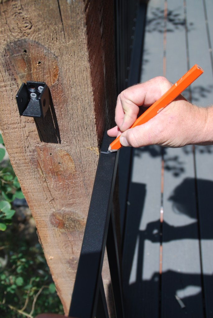 Previous Image Next Image DSC_0097 Marking the railing for the cut. Measurements were done in finger widths.