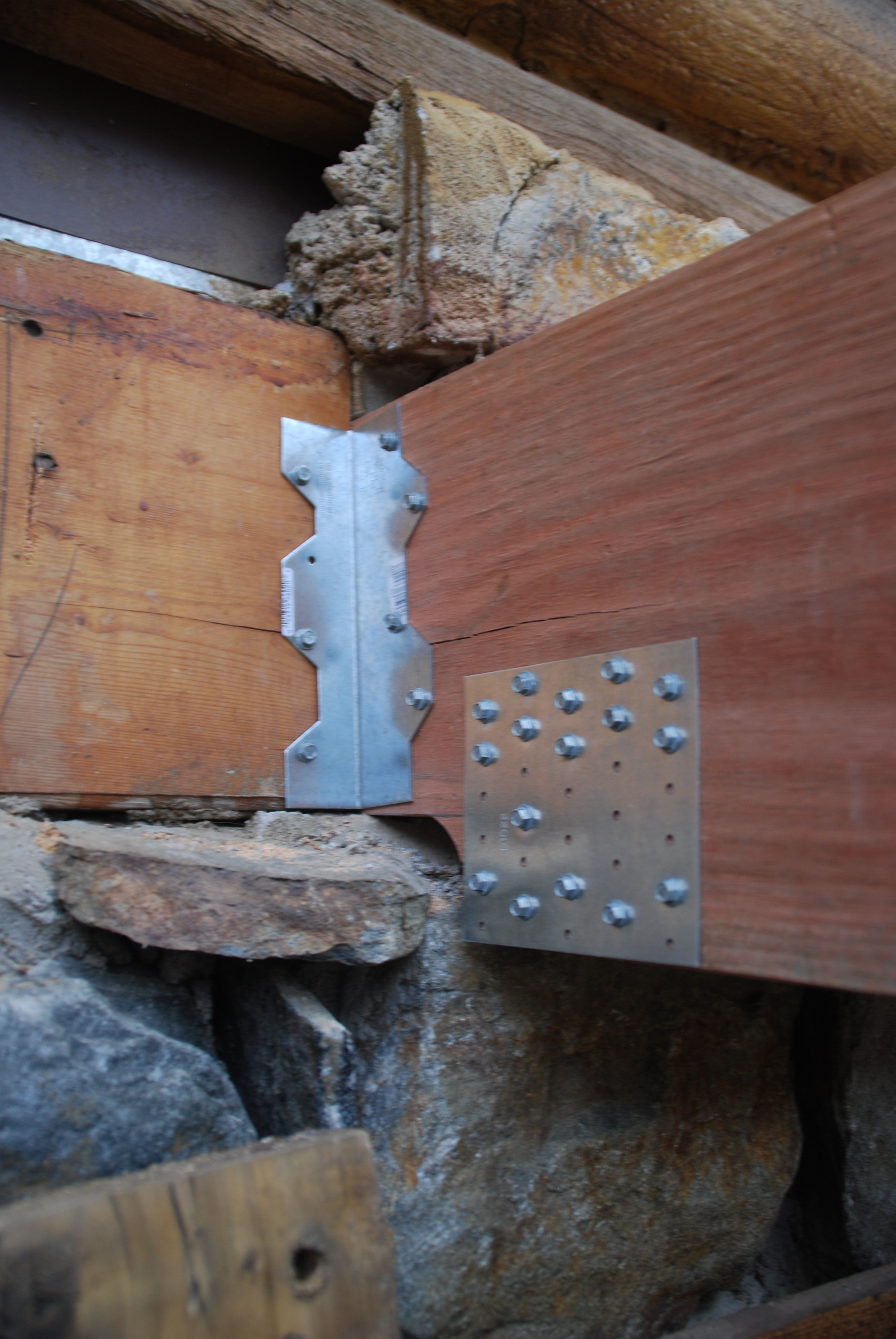Hardware holding joist to house.