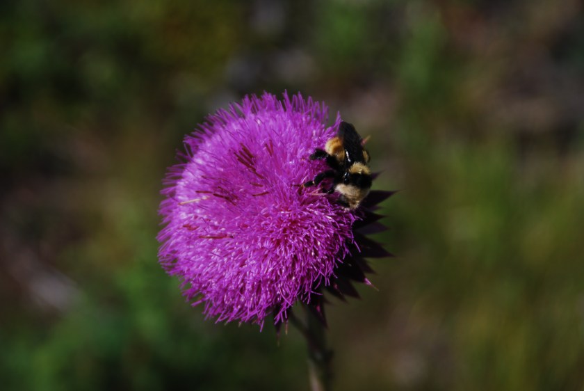 Flowers and insects, 1 of 3. Bee on thistle flower.