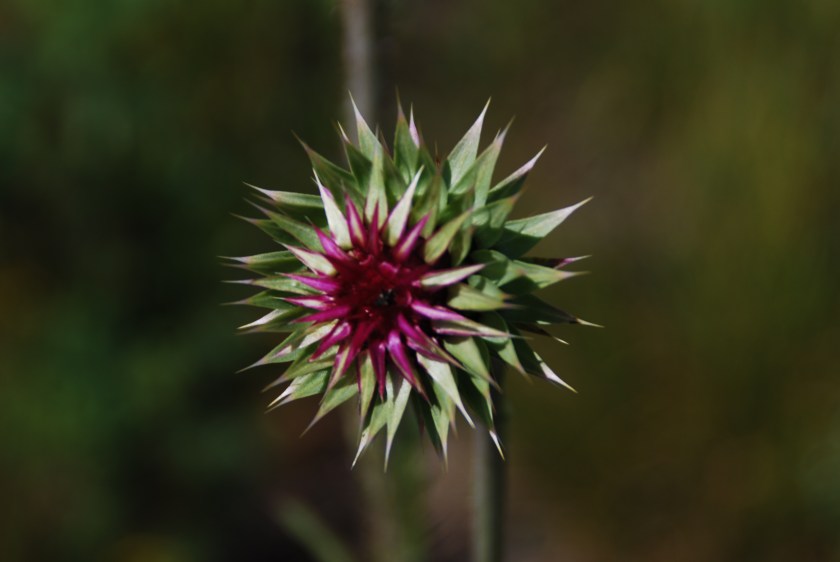 Flowers and insects, 2 of 3. Unopened thistle flower, no insect.