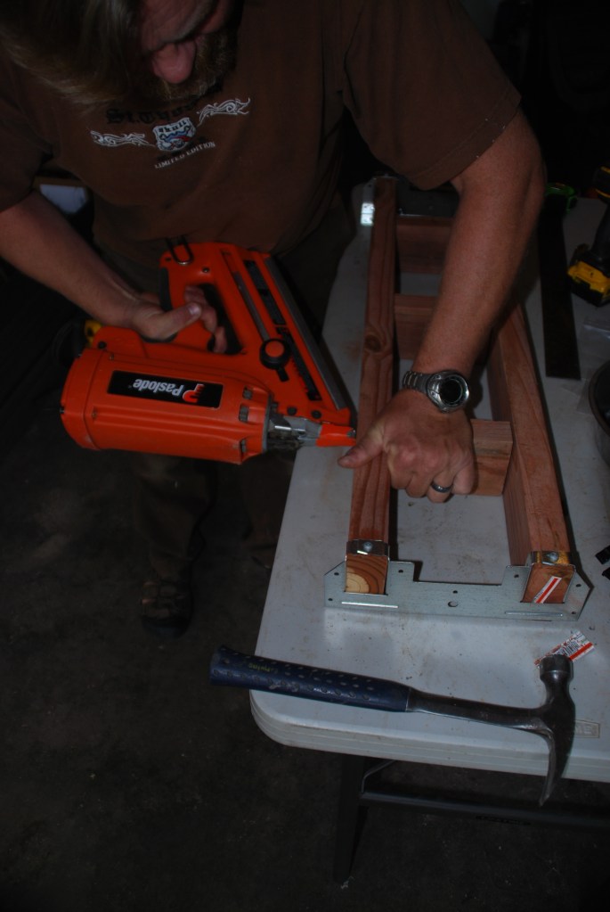 Previous Image Next Image DSC_0254 Using a nail gun to secure the cross braces/nailers between the 2x4s.