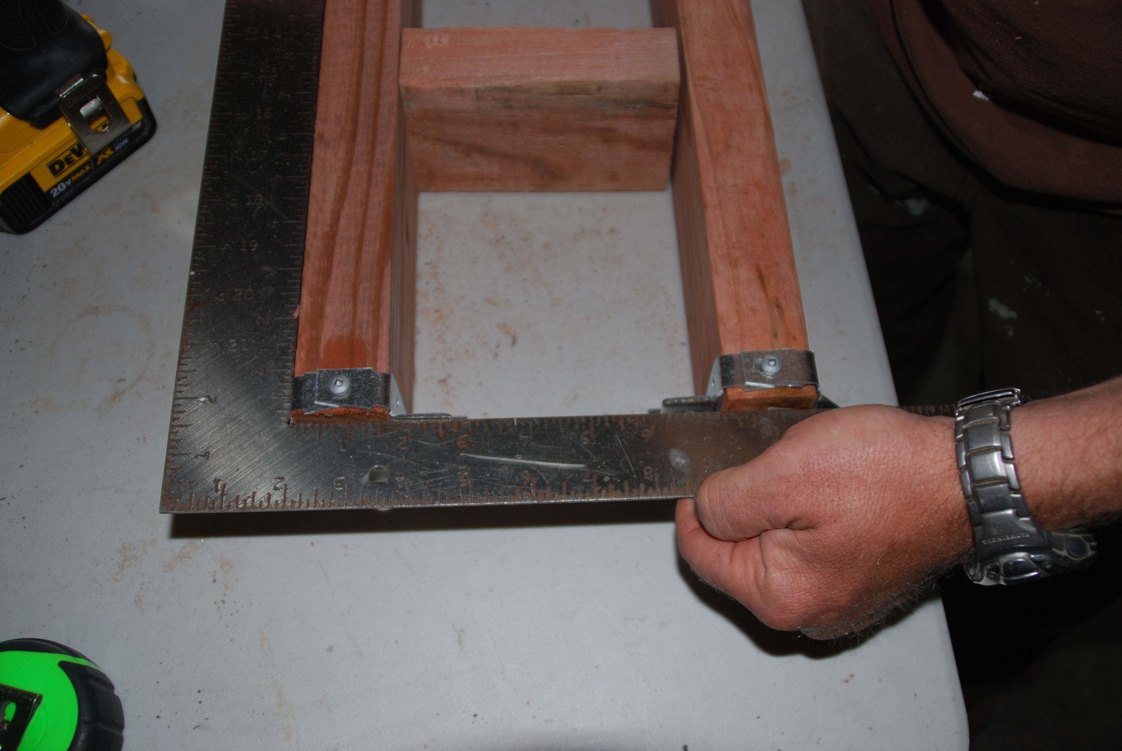 Previous Image Next Image DSC_0257 Using a carpenter’s square to verify that the stair is square and hasn’t racked.