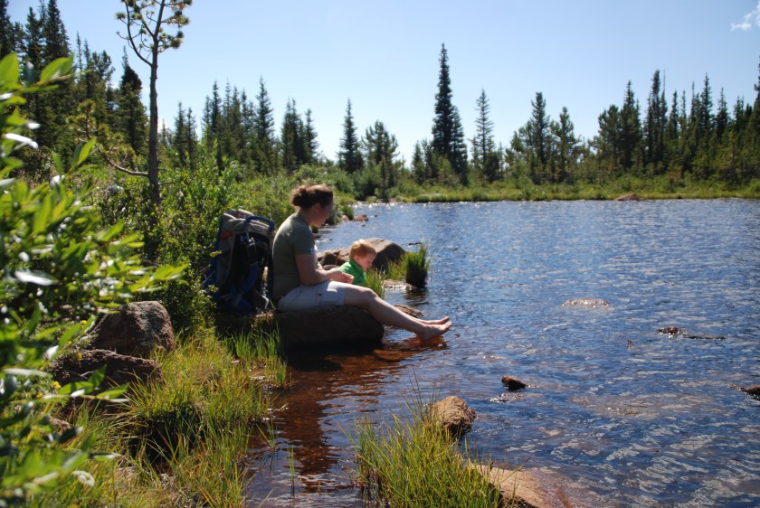 Dipping our feet in the very cold water of lake 2.