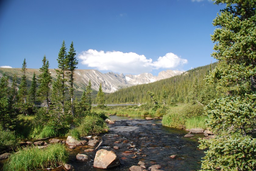 Creek flowing out of Long Lake. Niwot Ridge in the background.