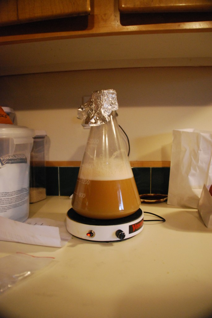 Next Image DSC_0407 Starter culture in 10% w/v DME after approximately 12 hours. Yeast was at 5.1 x 10^8 cells/mL.