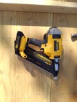 The key tool for this part of the project – the framing gun! Dave recently moved away from gas canister powered tools – they don’t work at altitude. This is the first real test for the DeWalt 20V framing gun.