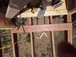 The rafters are on center, but on the on center measurement didn’t line up with the edge of the plywood. Spacer board and 2×4 to the rescue.
