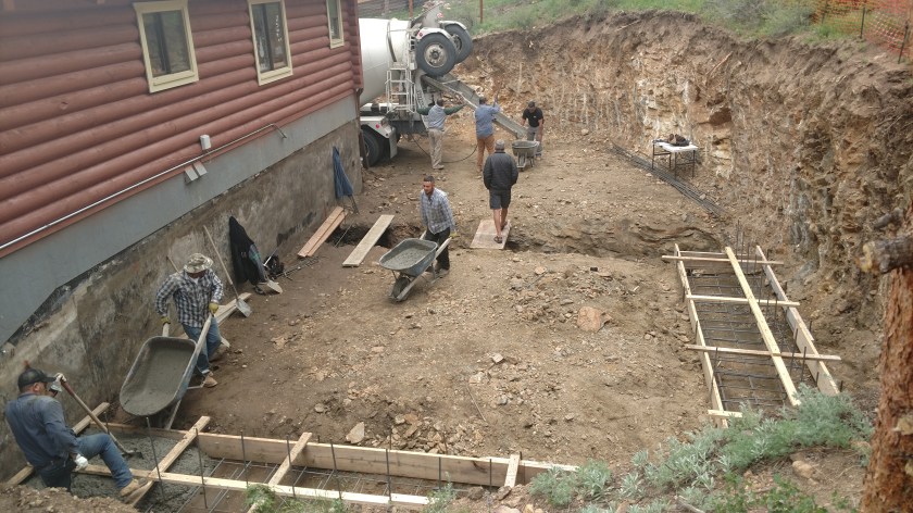 Previous Image Next Image img_20190618_143346 Wheelbarrowing the mud to the footers. Pump was not available.